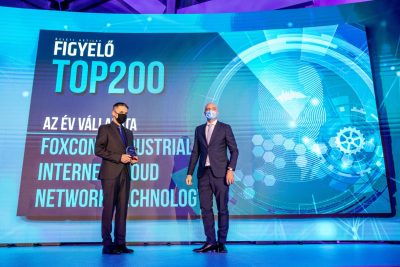 A Varga Mihály pénzügyminiszter fővédnökségével megrendezett Figyelő TOP200 Gálán az esztendő legrangosabb díjainak átadására került sor. A szakmai zsűri döntése az idén sem volt könnyű. A sok jelölt közül az Év vállalata elismerést végül a Foxconn Industrial Internet Cloud Network Kft. nyerte el. A díjat dr. Tálos Péter, a vállalat ügyvezető igazgatója vette át.